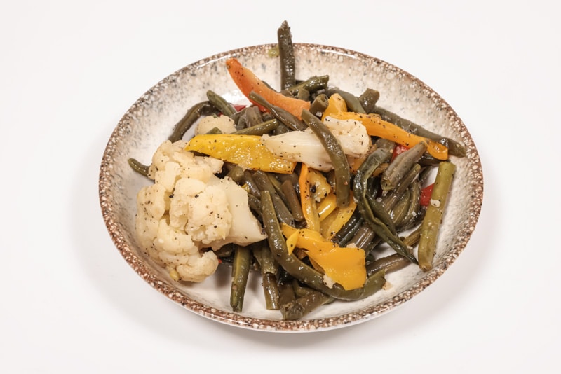 מגוון ירקות (פלפלים, בצל, שועית ירוקה,) מוקפצים במחבת בטעם סיני (חצי ליטר) כ2 מנות